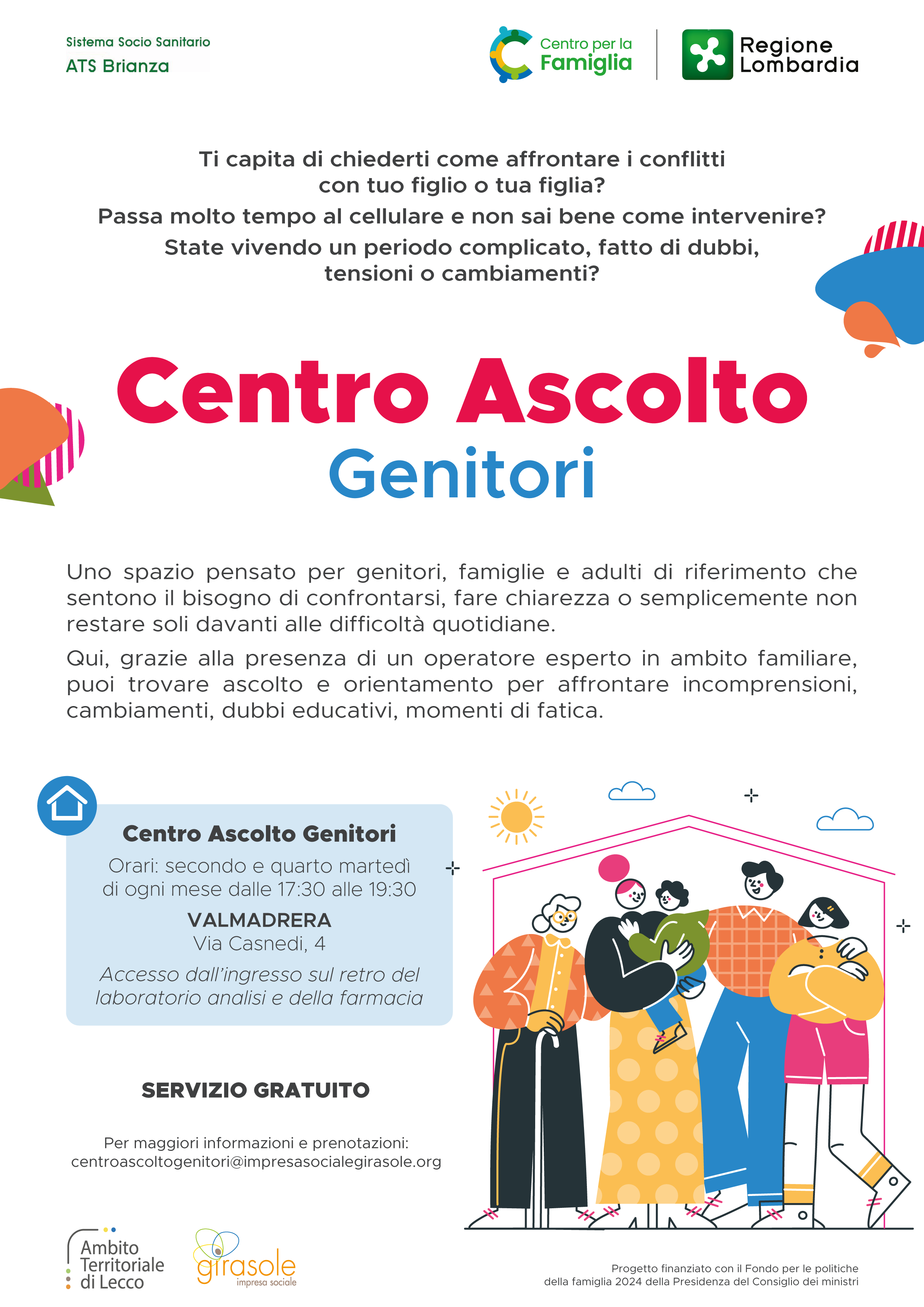 Per maggiori informazioni e prenotazioni: centroascoltogenitori@impresasocialegirasole.org